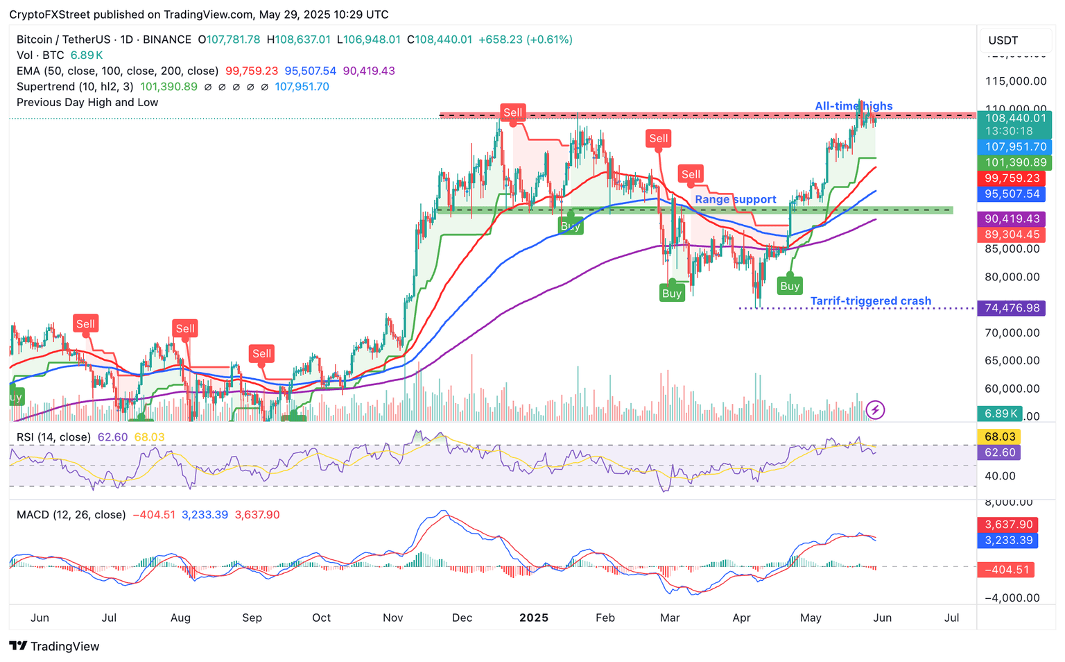 A break above the resistance marked in red on the chart around $110,000 could reignite interest in Bitcoin, as investors bet on gains extending above the all-time high. Key levels on the upside include $115,000 and $120,000, which mark Bitcoin's next price discovery phase.
