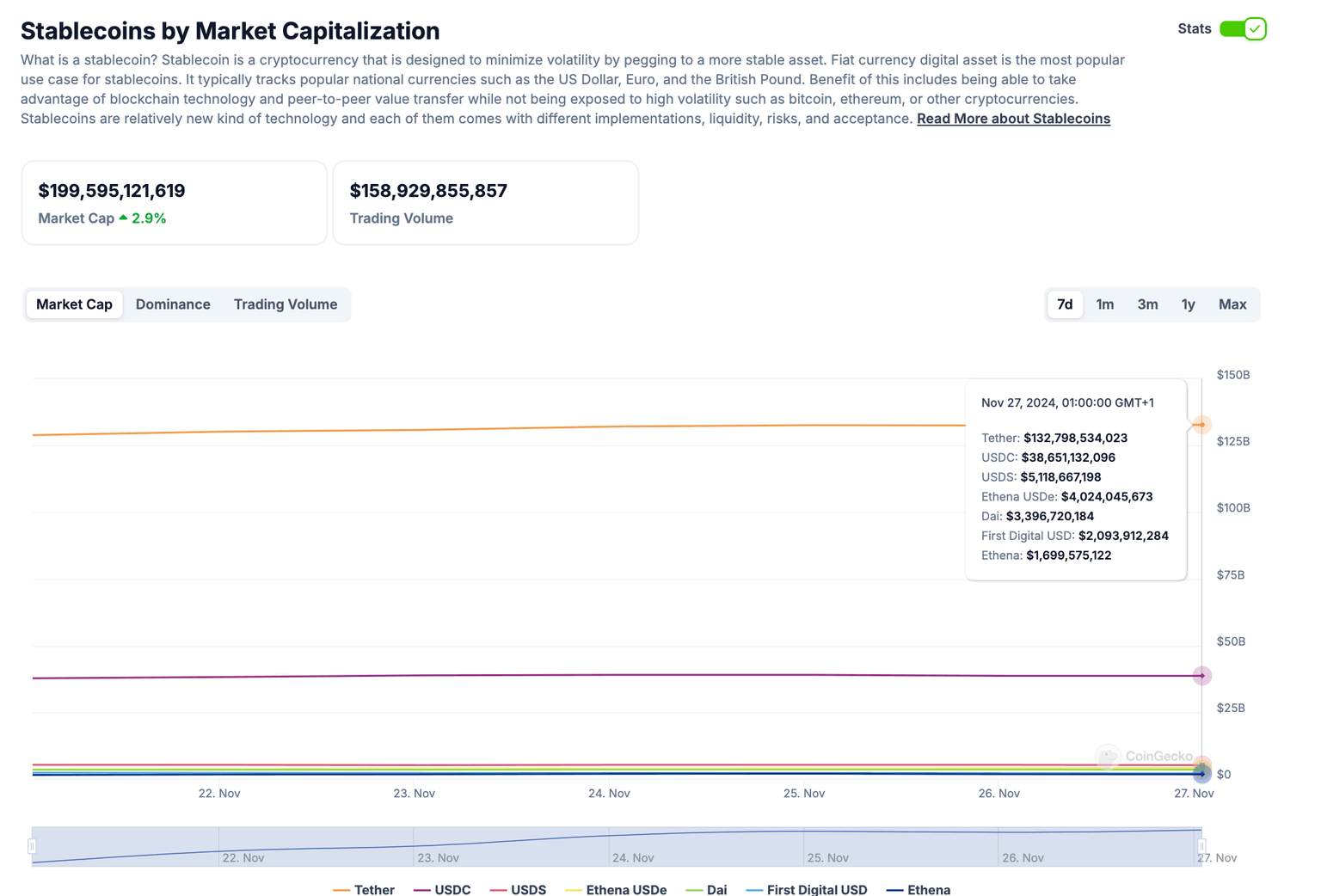 Chart of the day: Stablecoins approach $200B market cap, signaling December rally ahead