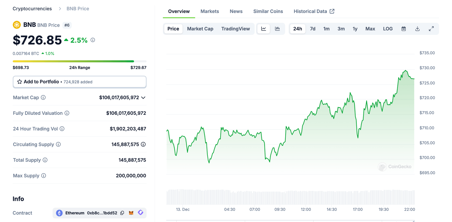 Bitcoin price held firm above the $100,000 level, Ripple (XRP) cleared the $2.40 resistance, while resurgent trading activity saw Binance Coin (BNB) break past the $725 level on Friday.