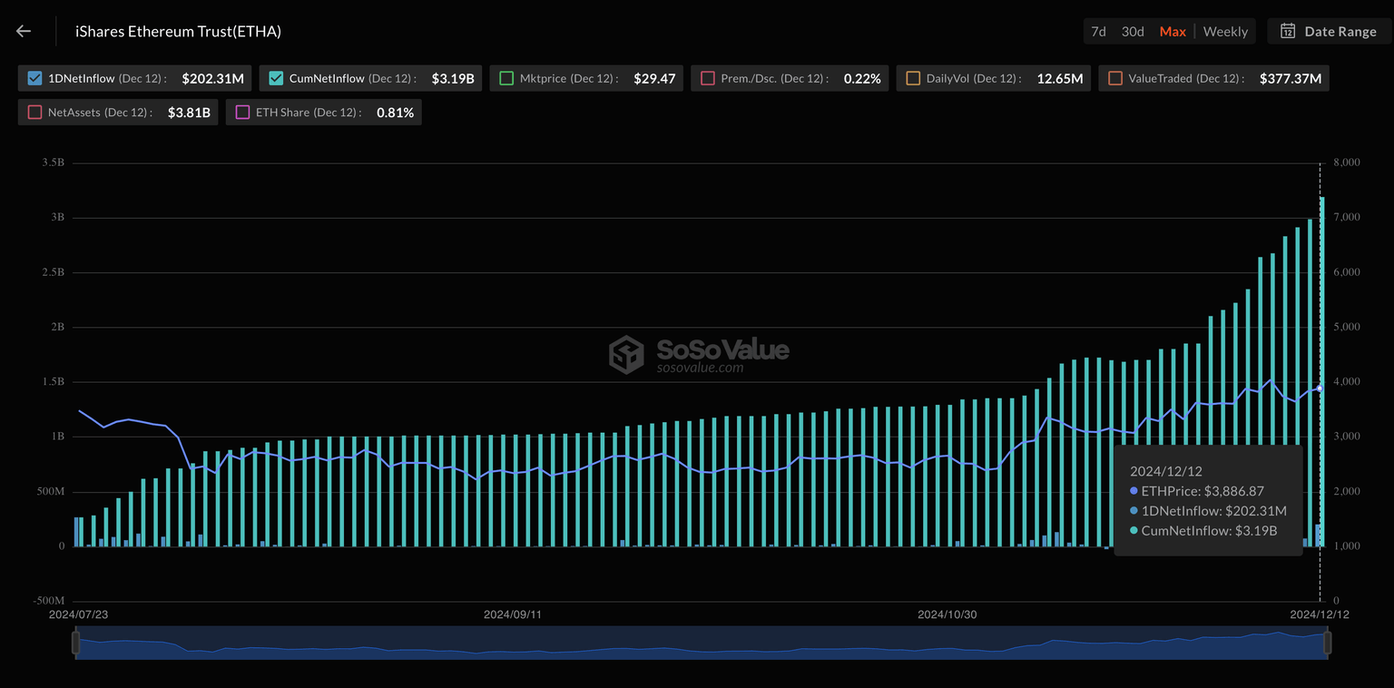Since Donald Trump nominated crypto-friendly Paul Atkins as Gary Gensler’s replacement in late November, US-based corporate investors have ramped up demand for Ethereum ETFs.