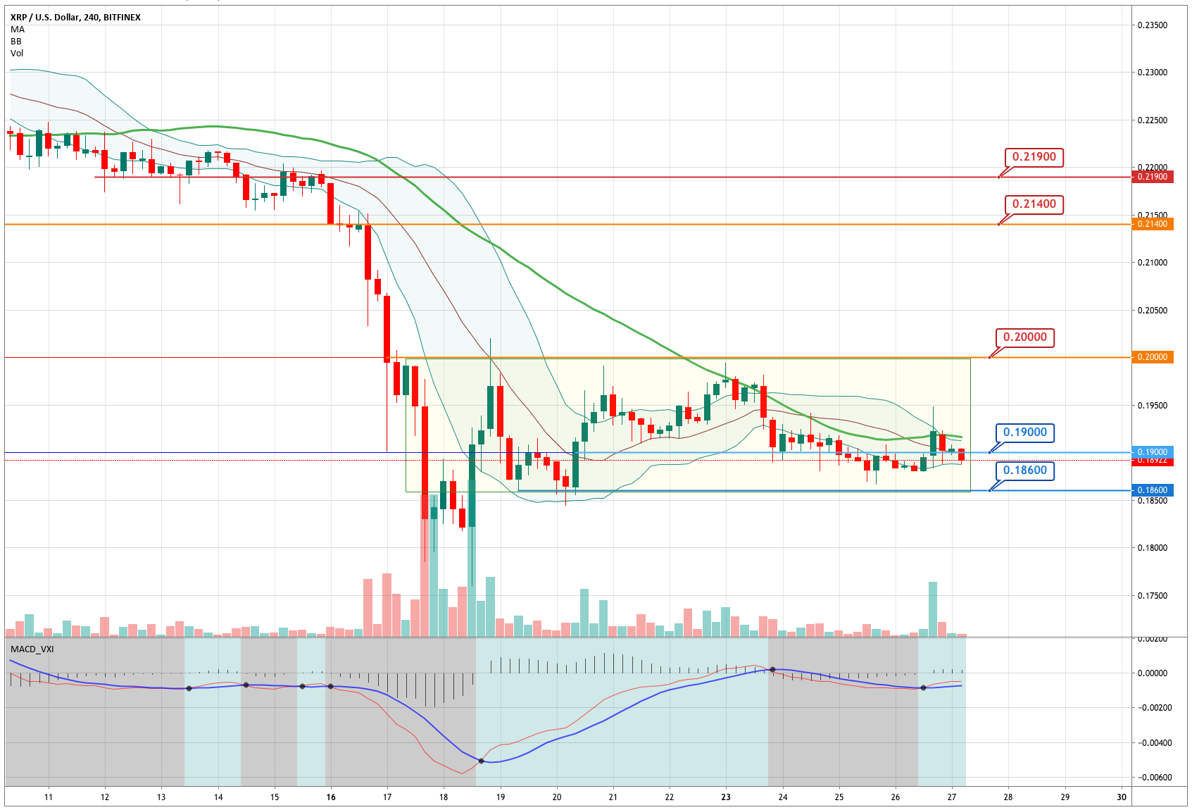 Ripple is trading in a range. The buying spike it did yesterday was market noise product of low-volume days. The price is still on the lower side of the trading range, and any movement to the upside or downside will probably be faded unless some major event moves the whole sector.