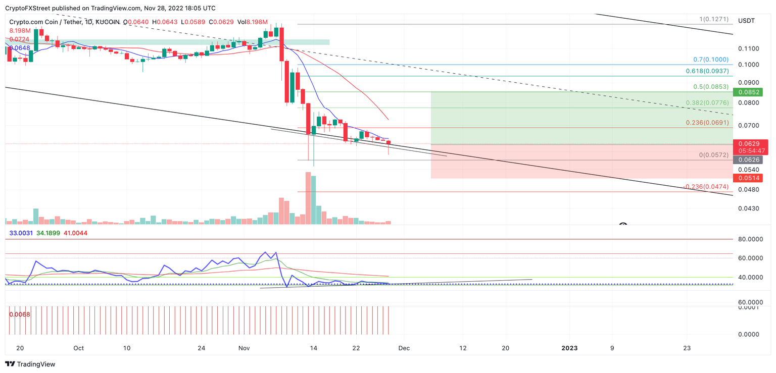 Crypto.com price shows bounce-worthy signals that merit the idea of an upcoming countertrend rise. As CRO continues trending downward, the technicals hint that the bears may be releasing their positions. Traders should keep their eye on the digital exchange token for a potentially profitable opportunity.