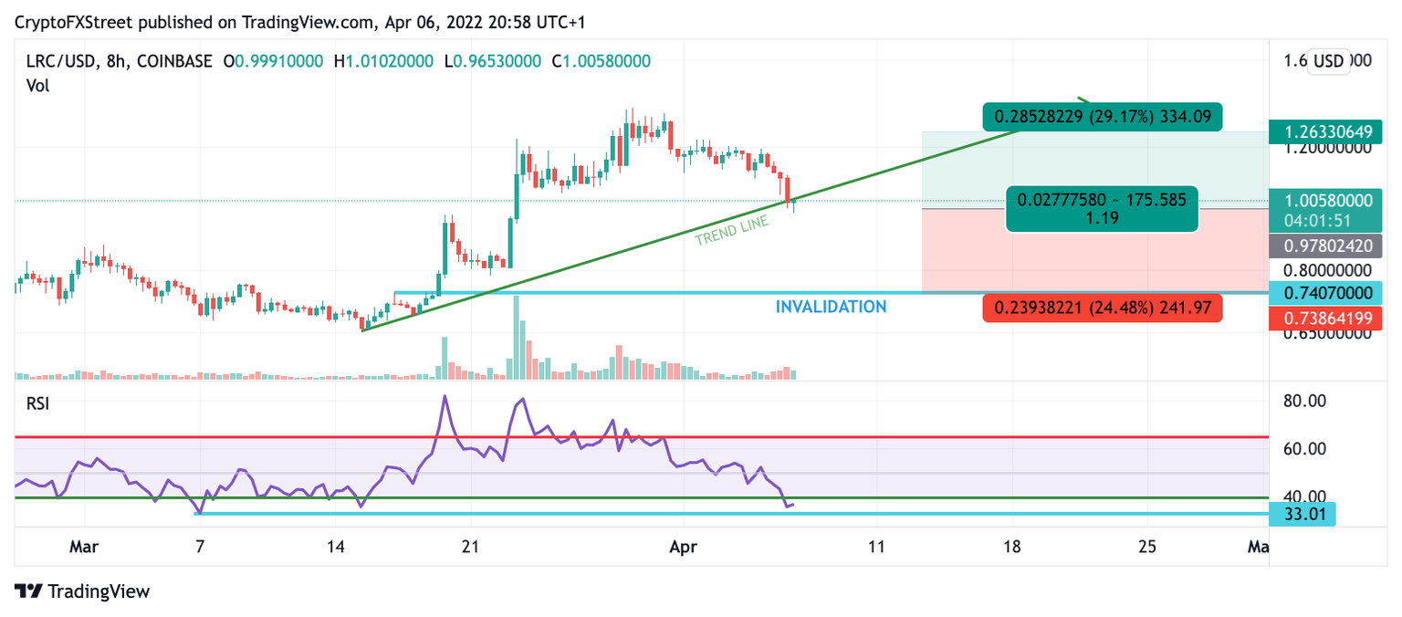 Loopring price could have a countertrend rally of up to 30%. The LRC price action at these levels could provide significant buy signals. Loopring price has fallen more than 20% since last week's thesis. Analysts at FXStreet gave a clear warning not to participate in any bullish trades unless $1.27 was breached.