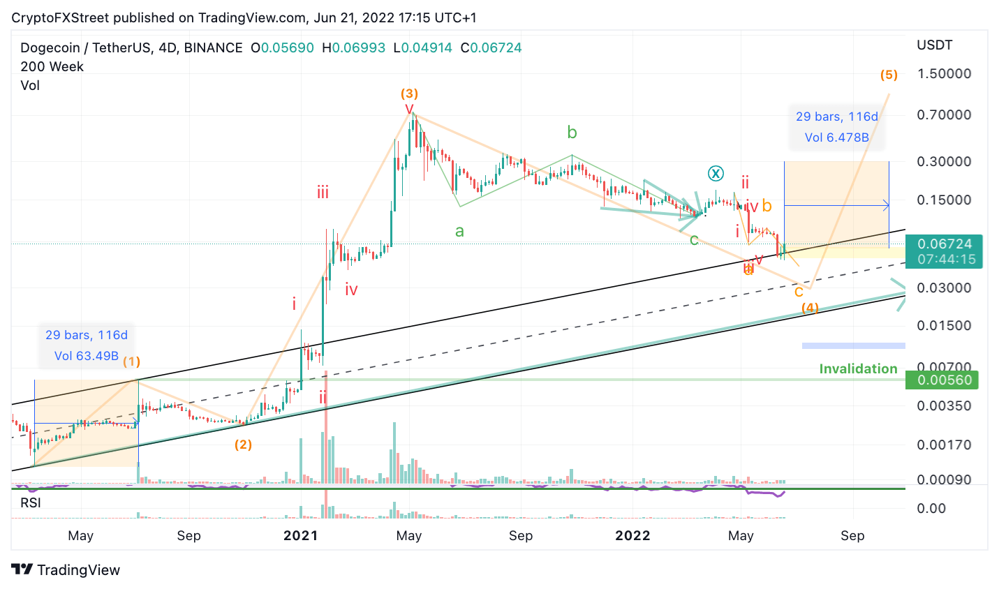 Dogecoin price looks very optimistic to start the third week of June’s trading session. The notorious meme coin saw a retest of the breached Elliot wave trend channel on June 10 into a $0.05 level. The acquaintance was followed by considerable sideways price action within the region.