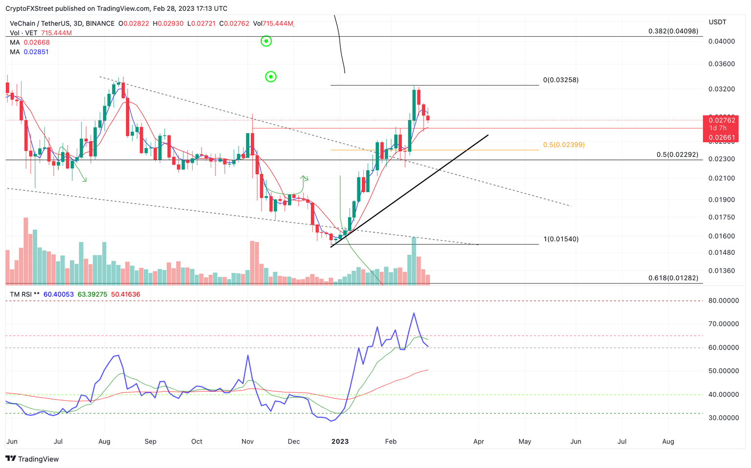 VeChain price has declined nearly 10% over the last six days, marking the longest declining streak for the token in 2023. Despite the profit-taking move, VET’s technicals are still in line with the overall bullish uptrend. The Relative Strength Index (RSI) suggests that the uptrend rally, which is 80% above its origin point at $0.015, still has the potential to extend higher.