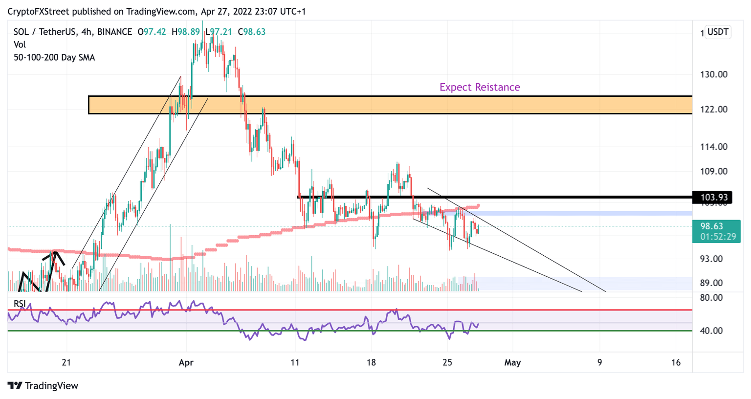 Solana price could fall towards $80 to grab liquidity as the bulls have yet to show any interest in the $97 price levels. To create a climatic downslide, market makers could entice traders to open long positions in the coming weeks. Solana price is currently trading at $97 and coiling into a wedge-like pattern.