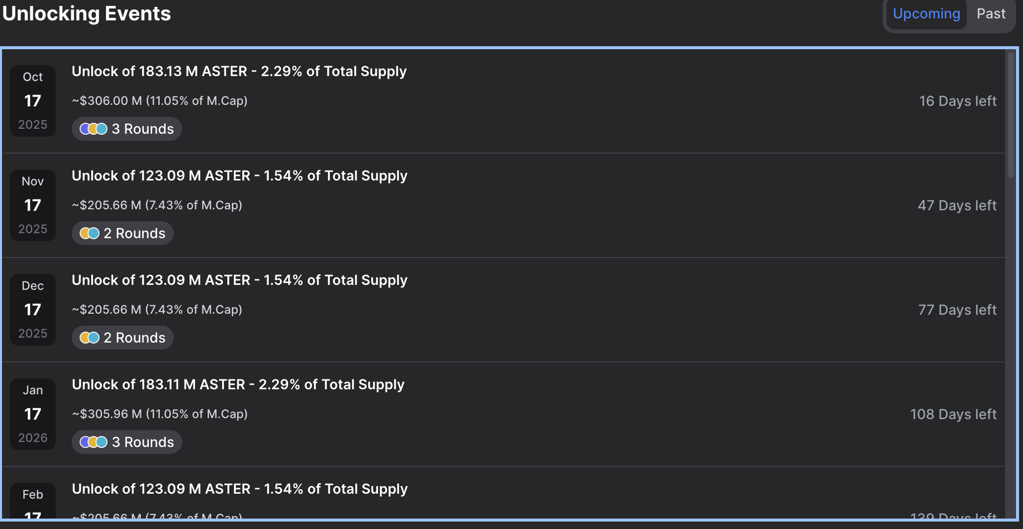 Quinten Francois, host of Coin Compass, shared on his X account on Tuesday that the unlock of 704 million ASTER tokens on Wednesday, accounting for 8.8% of the total supply, would increase the circulating supply from 5% to 13.8% in one day.