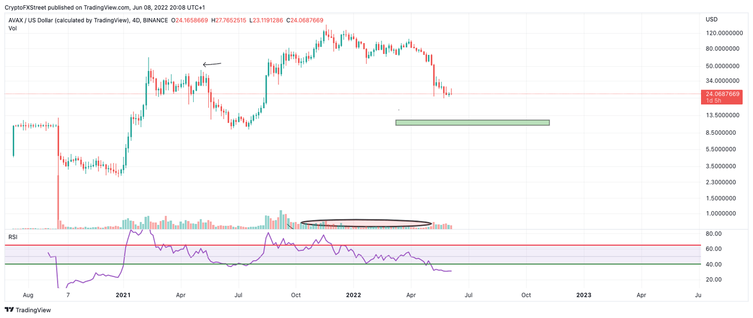 Avalanche price could fall further. Subtle cues are confounding the bearish thesis. The Avalanche price, like several cryptocurrencies, shows reasons to believe in one more decline. The bulls have been unwilling to wage a battle at the current $24 price level.
