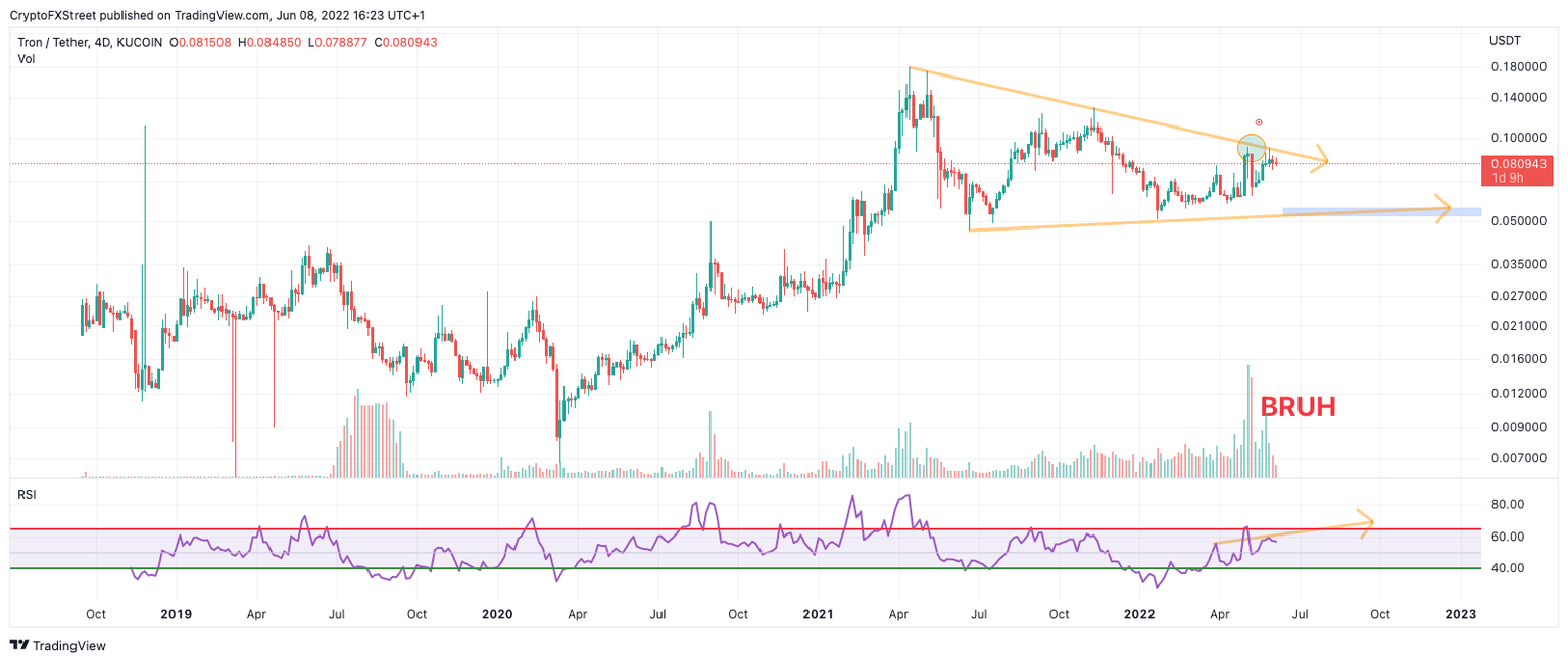Tron price shows significant sell signals on higher time frames. Traders should be careful. Tron price is currently trading at $0.08 as the crypto market as a whole is producing a stalemate this Tuesday. Illiquid market days usually provide investors time to review cryptocurrencies in search of subtle trend changes and anomalies.