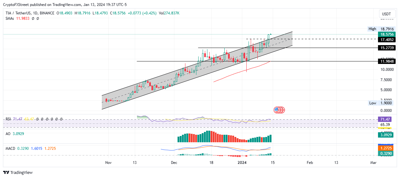 Celestia (TIA) price action since late October has been characterized by strong interest among the bulls to capitalize on every correction. Resultantly, each dip was countered by aggressive buying that saw TIA market value quickly pullback north. With TIA now overbought, the altcoin may be due for a correction before another foray north.