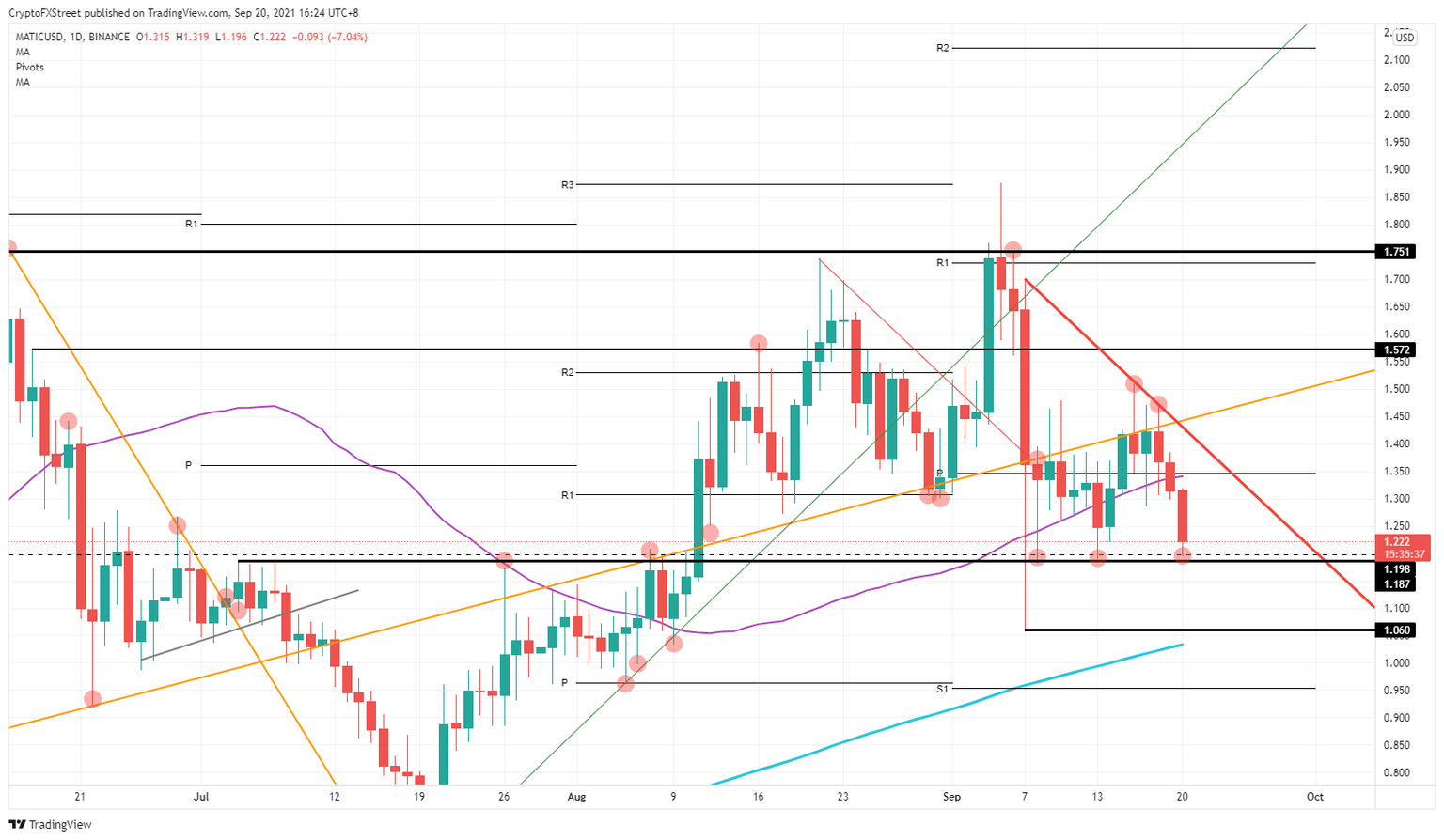 MATIC price enters bear triangle with potential 10% drop