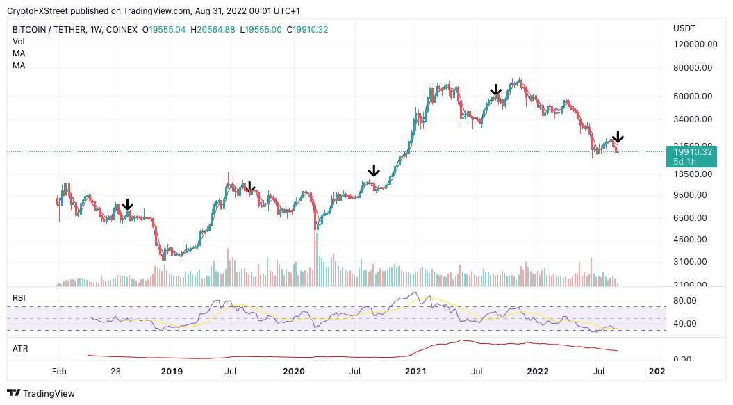 Bitcoin price could be hinting at more decline as a last minute influx of transactions comes in near the critical $20,000 barrier. Bitcoin price currently auctions at $19,830 as retail traders are jumping into the market to place their bets on the next directional move.