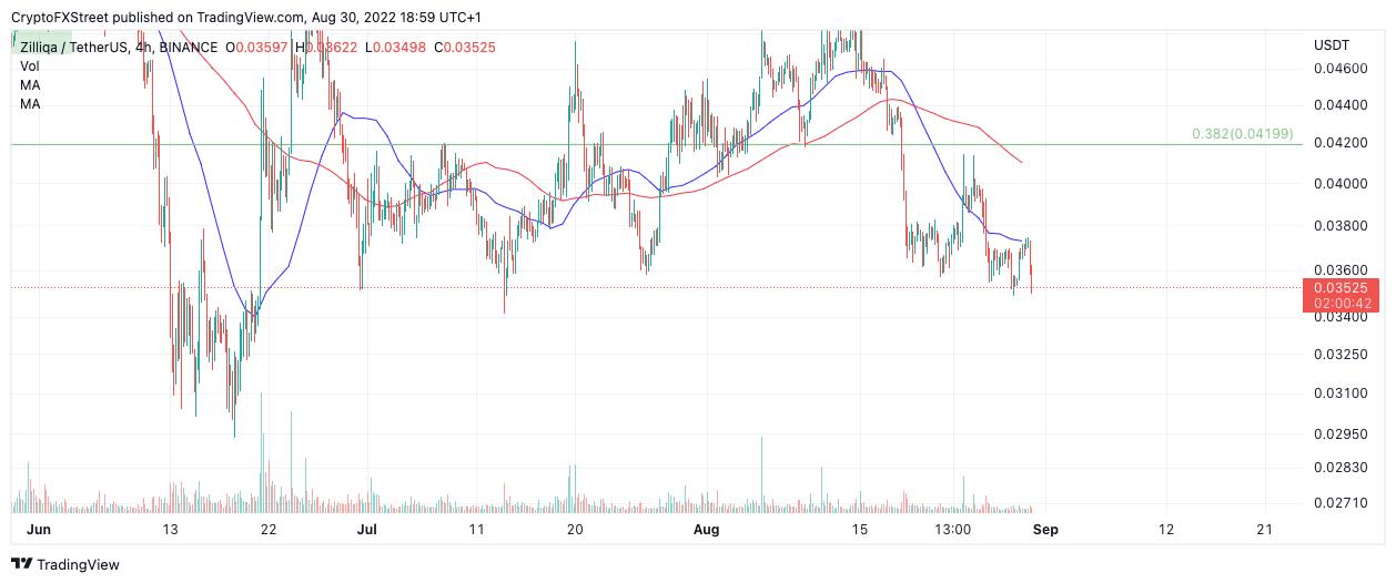 Zilliqa price shows bearish signals towards the end of August that investors stifled. Since July 13, the ZIL price has rallied 45% into a monthly high at $0.049. A rejection from the psychological $0.05 zone accompanied by a bearish death cross of the 8- and 21-day simple moving averages (SMA) were the catalysts for a shocking penny-from-Eiffel.