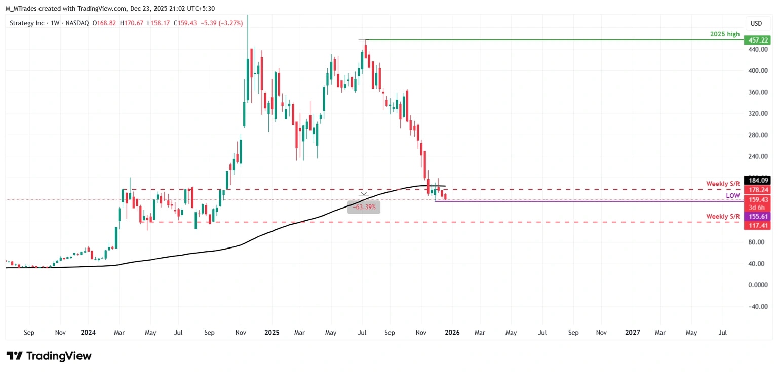 Strategy (MSTR) and other corporate Bitcoin (BTC) treasuries remain under pressure as 2025’s volatile BTC performance – marked by sharp rallies and deep corrections – left annual returns flat to slightly negative. MSTR stock prices are down more than 60% from their year-highs, while peers that raised capital through Private Investment in Public Equity (PIPE) have also seen their stock prices erode toward their issuance levels.