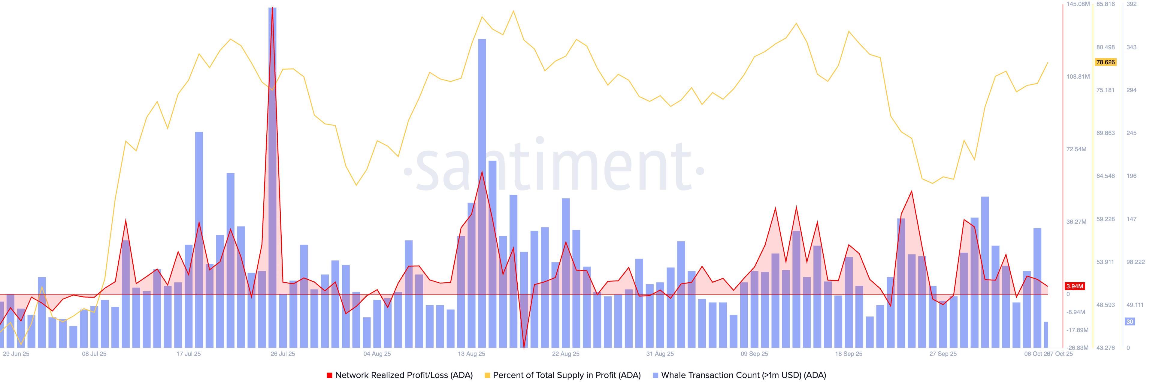 Cardano (ADA) remains on the edge, pulling back 1% at press time on Tuesday after gaining over 4% the previous day. The rising retail demand and declining selling pressure signals from the on-chain data align with the broader market optimism around the “Uptober” narrative.
