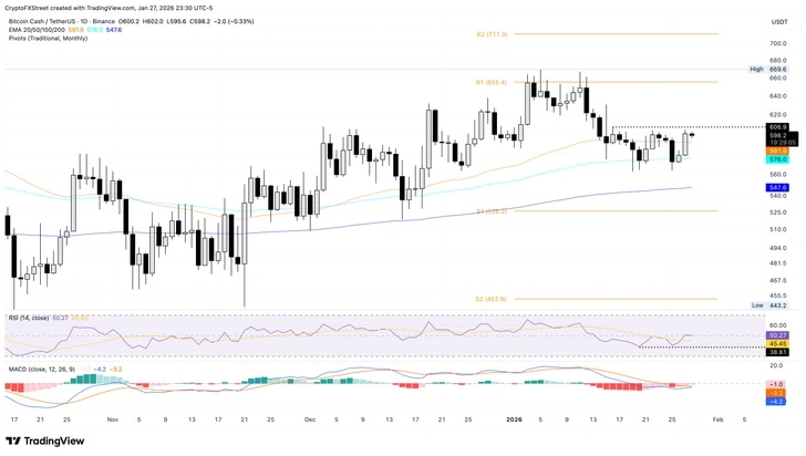 Bitcoin Cash (BCH) is trading around $600 at press time on Wednesday, framing a potential double bottom reversal on the daily chart. The BCH token is witnessing renewed capital inflows into its futures contracts amid a positive funding rate cycle, signaling renewed investor interest. Technically, Bitcoin Cash could rally toward $655 if it sustains momentum.