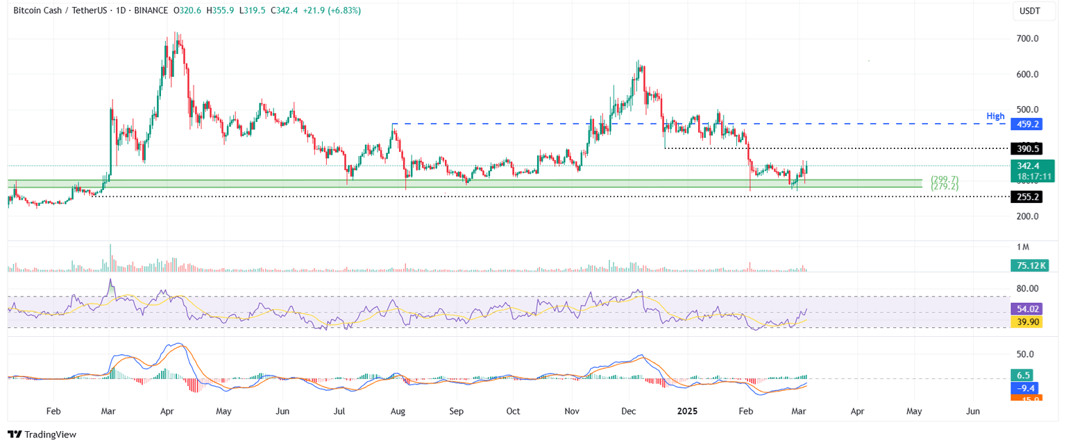 Bitcoin Cash (BCH) price is rallying more than 7%, trading around $342 on Wednesday after retesting its key support level the previous day. On-chain metrics support the bullish outlook as BCH’s transaction rate reaches a new high, and open interest is also rising. Moreover, the technical outlook suggests a rally ahead, targeting the $390.5 level.