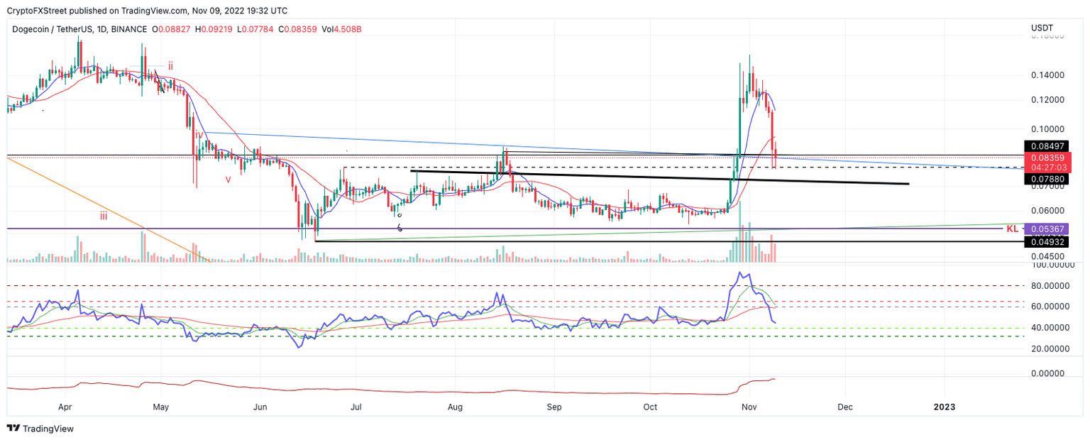 Dogecoin price witnessed a devastating decline during the second trading week of November. A sweep-the-lows event could be underway if the bulls show up later. Key levels have been defined to determine DOGE's next potential move.