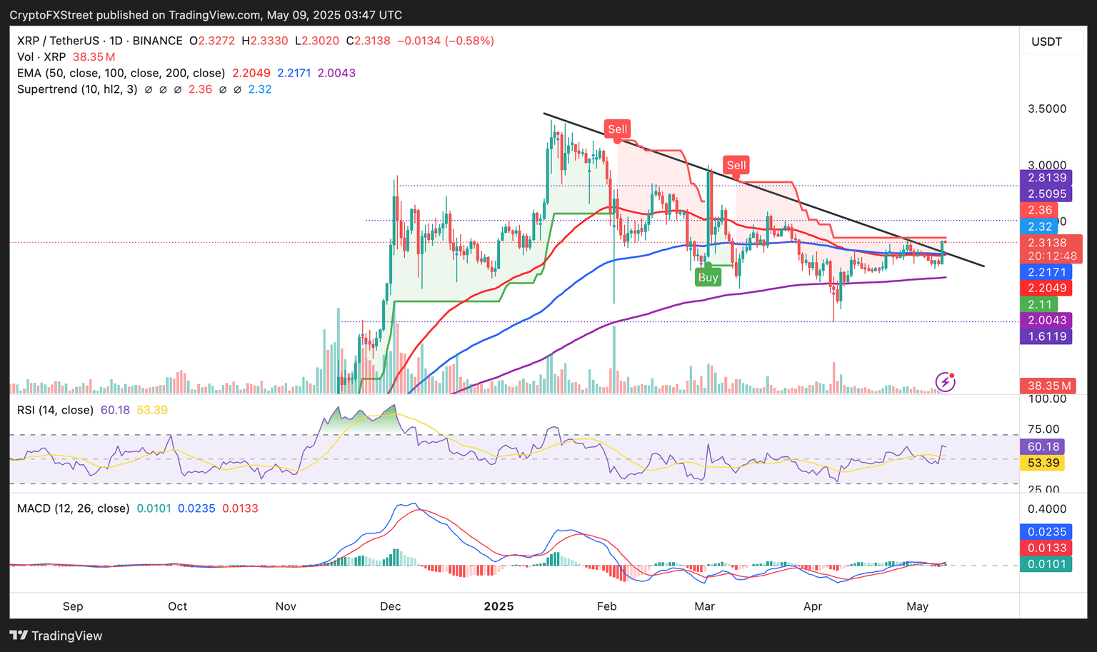 Ripple (XRP) price consolidates gains around $2.31 at the time of writing on Friday, down slightly on the day. A joint motion filed by Ripple and the Securities and Exchange Commission (SEC) on Thursday revealed that the two parties have reached a settlement agreement pending judicial approval. If approved, the motion would end the longstanding battle between Ripple and the SEC and possibly set a precedent for future litigations involving crypto-related entities.