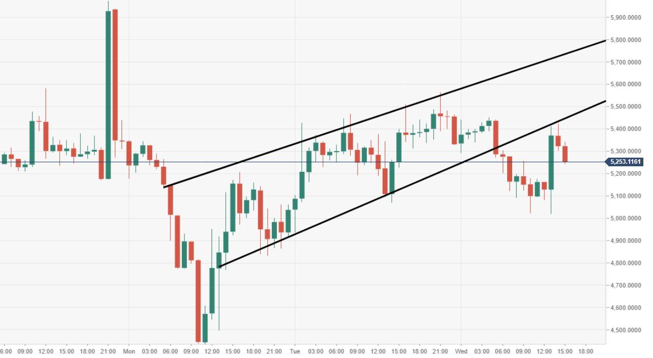 The bears will need to break down $5000 to invite another wave of downside pressure.