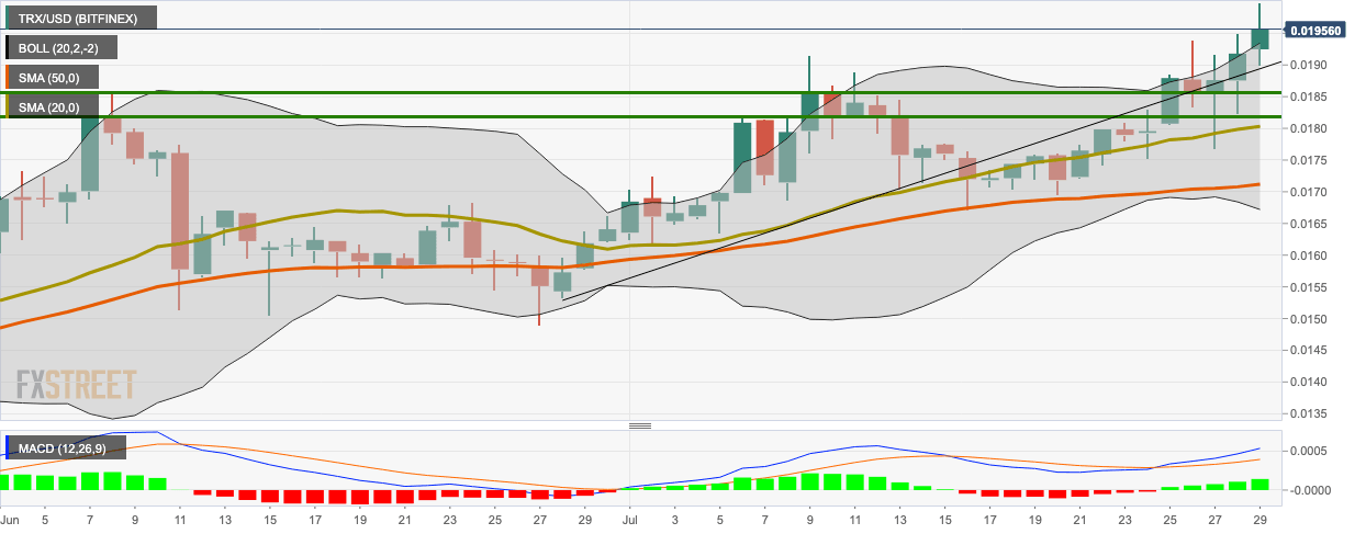 Tron Technical Analysis: TRX/USD aims for $0.02-level after a hattrick of bullish days