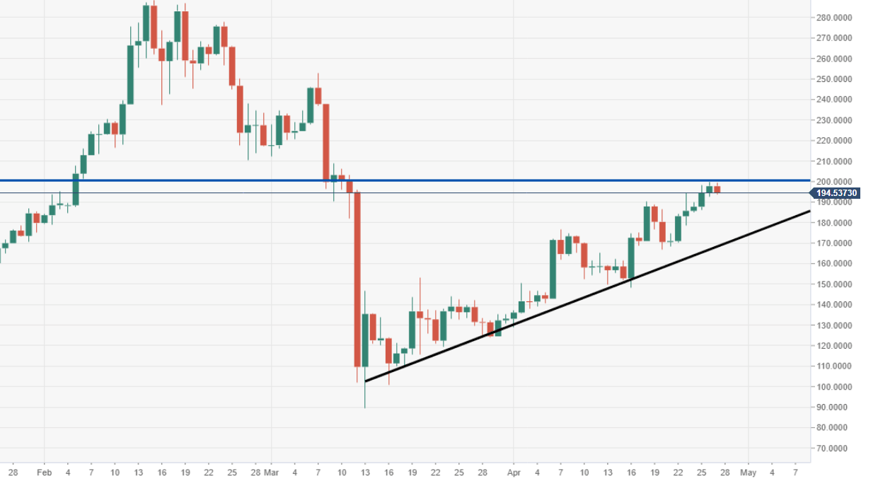 Ethereum price is trading in the green by 2.35% in the session on Monday. ETH/USD bulls have been pushing higher for five consecutive sessions. A return into the $200 price mark, would very likely restore much buyer faith.