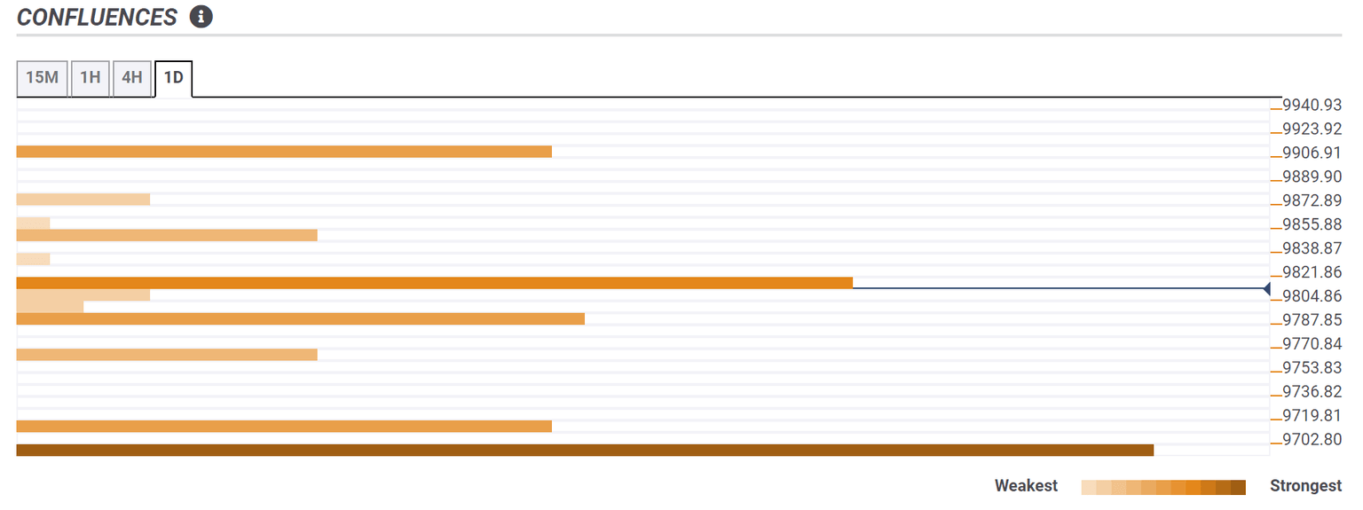 The Technical Confluence Indicator is not showing a lot of resistance points towards $10,000. The major resistance area is close at $9,821 where the Pivot Point 1 Week R1 is currently standing.