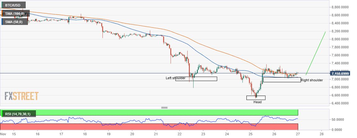 BTC/USD inverted head and shoulder pattern breakout eyes $8,200