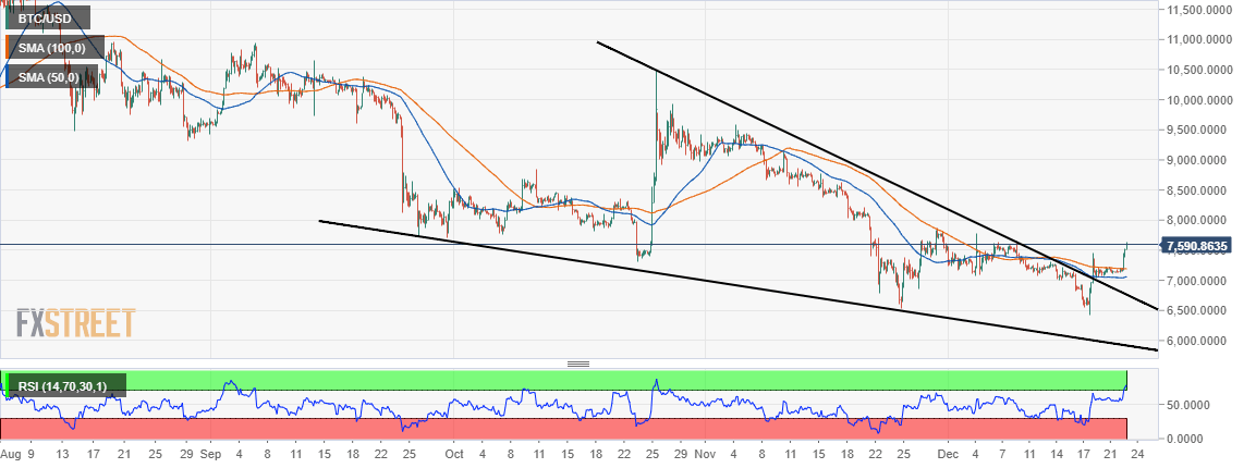 The weekend session in the crypto market was characterized by impressive action to the upside. Generally, cryptoassets corrected higher above the key support areas formed during the bearish previous week. Bitcoin, for instance, reacted from levels close to $6,500 to highs around $7,500.