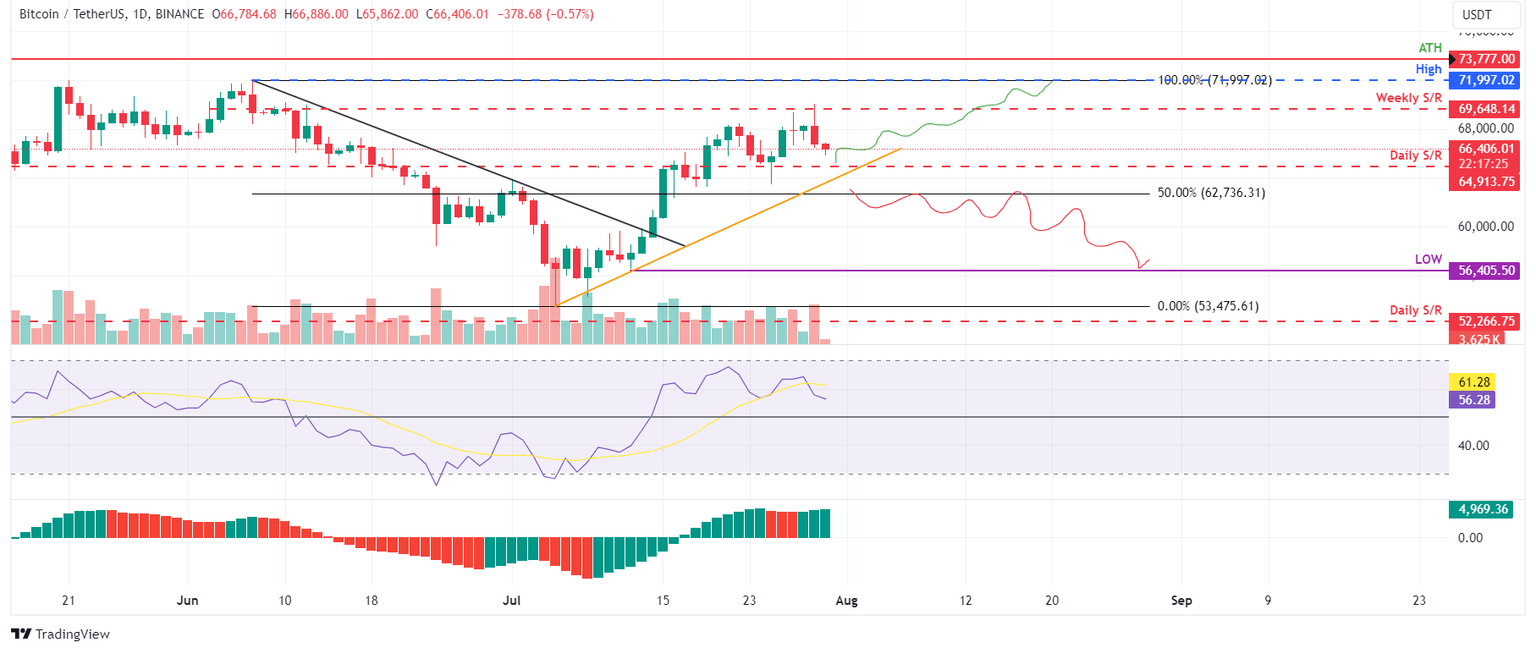 Top 3 Price Prediction Bitcoin, Ethereum, Ripple: Bitcoin finds rejection around the $70,000 level
