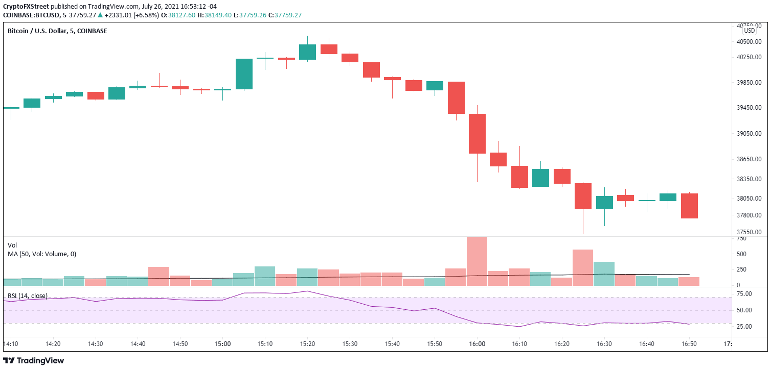 Bitcoin price was up over 14% at one time today, taking it close to the imposing resistance beginning at $41,300. BTC falling wedge pattern breakout remains secure and projects higher prices. Amazon denied plans to launch a cryptocurrency in 2022 but acknowledged it would continue to explore cryptocurrencies.