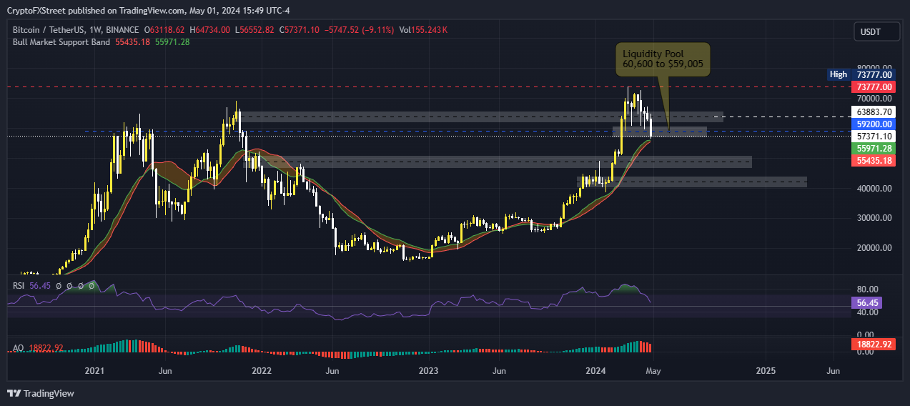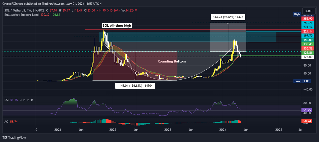 Solana (SOL) price is down almost 5% in the past 24 hours and over 20% in the last seven days. The dump comes as the broader crypto market contracts with Bitcoin price leading the pack as it slides below the $58,000 threshold to test the Bull Market Support Band Indicator.