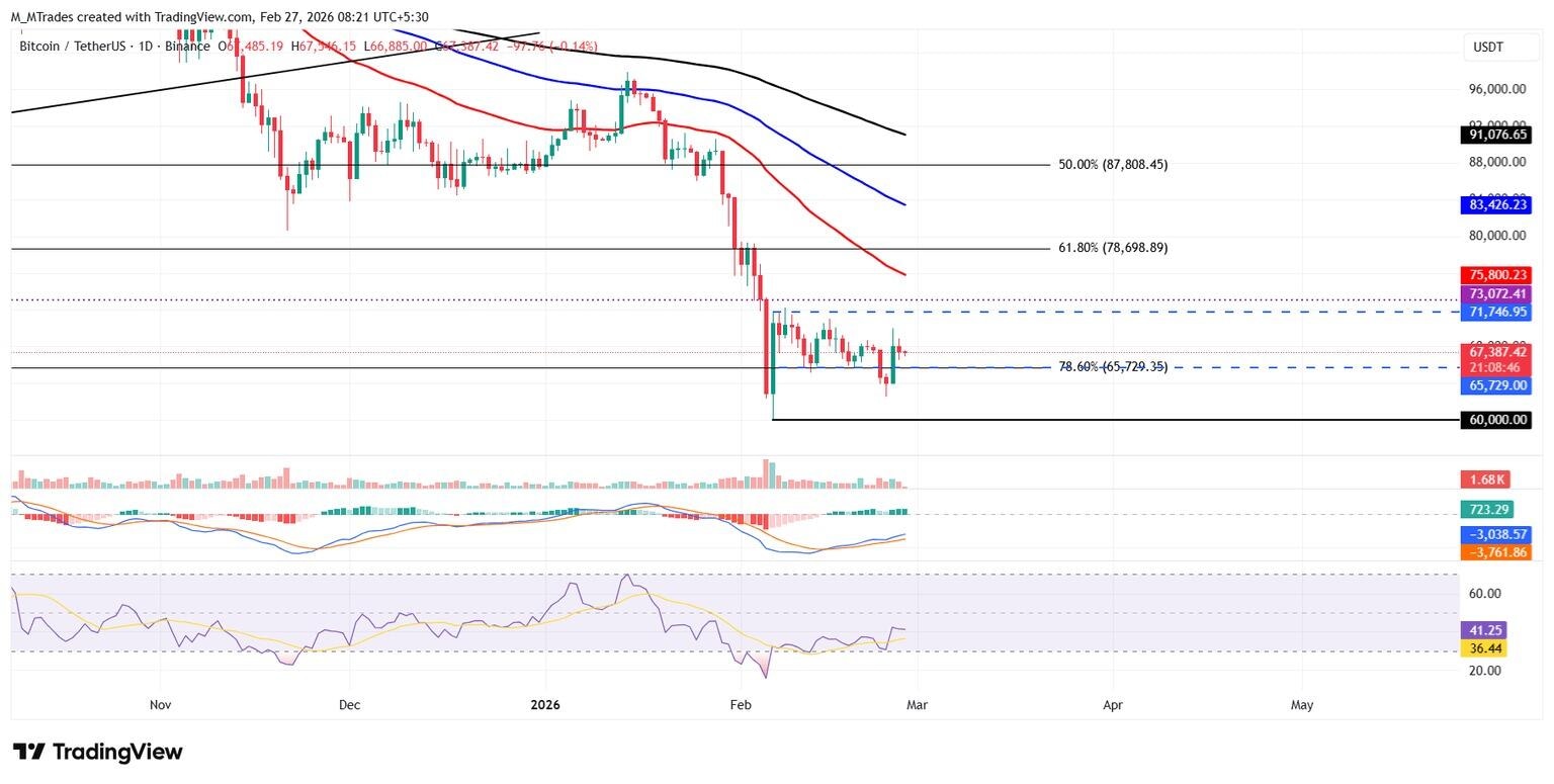 Bitcoin (BTC), Ethereum (ETH) and Ripple (XRP) are consolidating near key technical areas on Friday, showing mild signs of stabilization after recent volatility. BTC holds above $67,000 despite mild losses so far this week, while ETH hovers around $2,000 after a rejection near its upper consolidation boundary. Meanwhile, XRP steadies at $1.40 after finding support around a key level. The price action of these top three cryptocurrencies by market capitalization suggests a cautiously constructive tone as traders await a key catalyst that could pave the way for further upside moves.