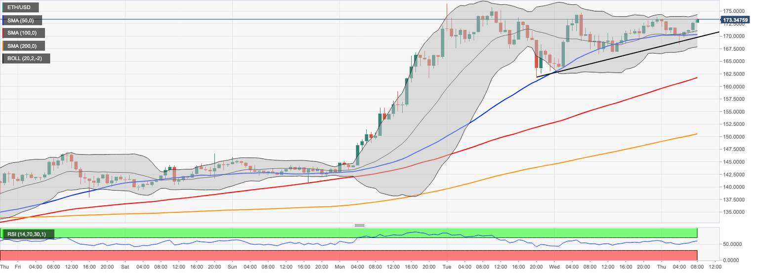 ETH/USD recovered from the intraday low of $168.42 and settled at $173.40. The coin has gained 1.1% in the recent 24 hours as the upside momentum has resumed after a short-term consolidation period. The second-largest digital asset has a market value of $19 billion, while an average daily trading volume has exceeded $14 billion.