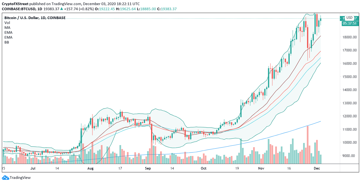 Bitcoin has taken the lead in the recent run-up in the cryptocurrency market yet again as it moved back above the $19,000 mark. Prices have managed to retain all the gains realized over the last few weeks after recording a new all-time high of $19,950.
