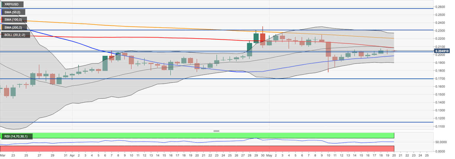 Ripple’s XRP is the third-largest digital asset with the current market capitalization is $8.9 billion and an average daily trading volume of $1.9 billion. XRP/USD retreated from the intraday high of $0.2061 to trade at $0.2045 by the time of writing. Despite the upside momentum, the coin is mostly unchanged since the beginning of the day as it has been trading within a short-term bearish bias amid low volatility.