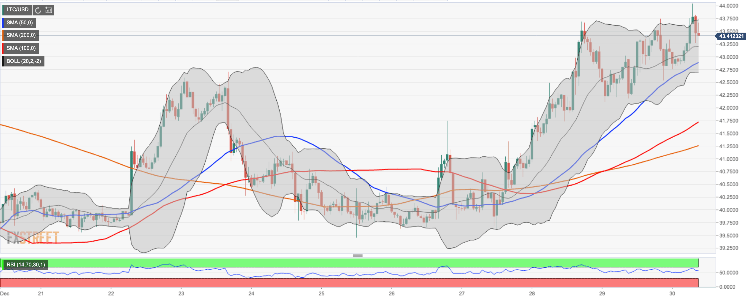 Litecoin (LTC), the sixth-largest digital asset with the current market capitalization of $2.8 billion, has gained 1.3% in recent 24 hours. At the time of writing, LTC/USD is changing hands at $43.53 amid low trading volumes
