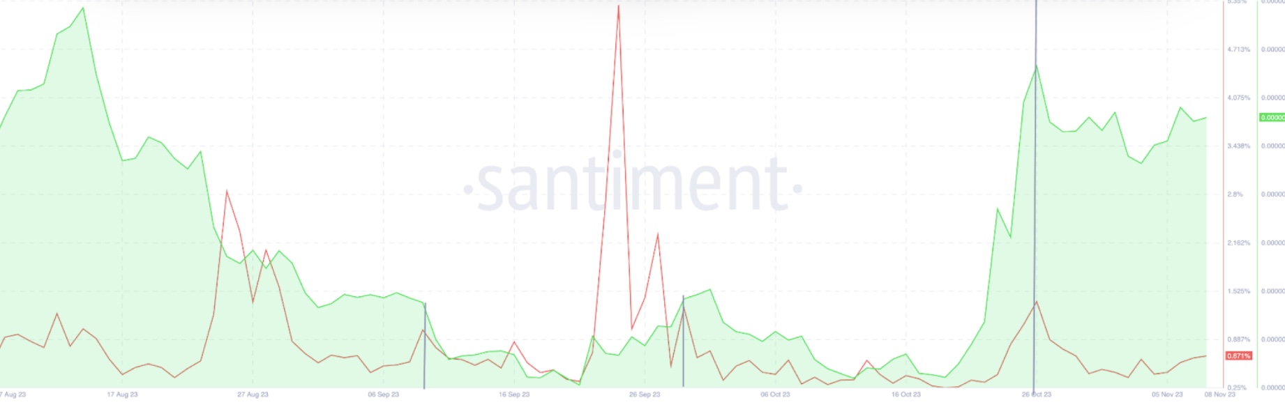 On-chain metrics for PEPE support a bullish outlook regarding the asset. A price recovery is likely in PEPE, when Social Dominance, Net Realized Profit/Loss and declining exchange supply are considered.