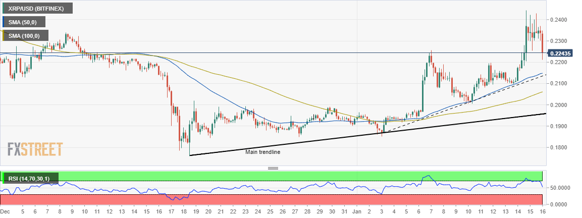 Ripple is facing growing resistance and selling pressure on Thursday. The Asian session has been characterized by losses to the tune of 3.58%. XRP recently pushed to new 2020 highs at $0.2444. However, an immediate correction that seemed imminent is underway.