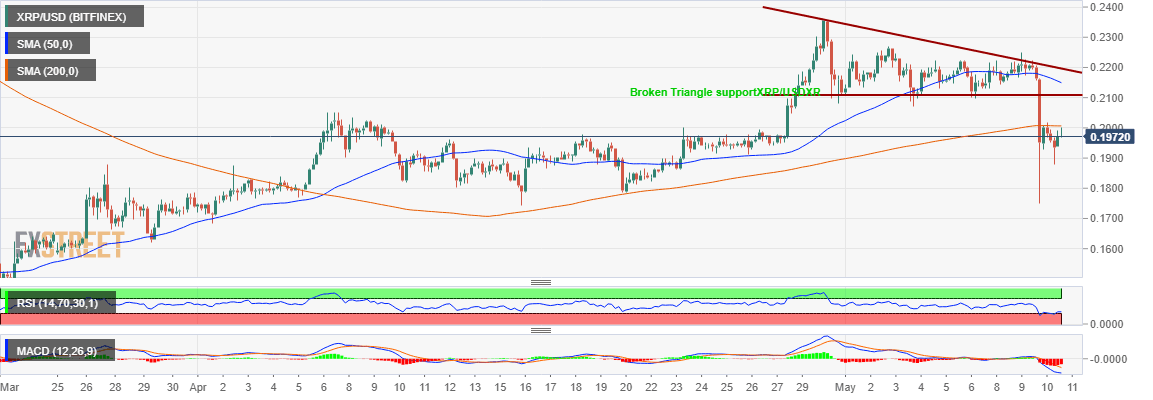 Ripple price was victim to the selloff across the market on Sunday. Like deadweight, XRP spiraled below last week’s key support range between $0.2050 and $0.2100. The lower leg was extended under $2.0 where a new weekly low was formed at $0.1750 (now key support area).