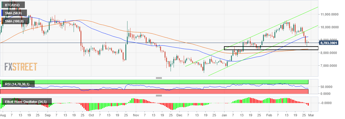 Bitcoin price is still bearish despite attempts to push it towards $10,000. Volatility levels in the cryptocurrency market continue to mount especially for the major cryptos such as Bitcoin, Ethereum and Ripple. The European session has kicked off in losses as sentiments remained unchanged. BTC/USD is trading at $8,704 following an adjustment from an intraday day high of $8.898.