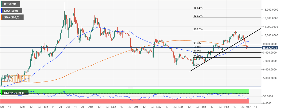 Bitcoin price is having a positive start to the week’s trading. The Asian session on Monday is characterized by increased buying entries amid the building bullish momentum. BTC/USD is up a subtle 1% while trading at $8,614. Bitcoin price has advanced upwards from an opening price of $8,525.75 although it also recorded an intraday low of $8,485.52.