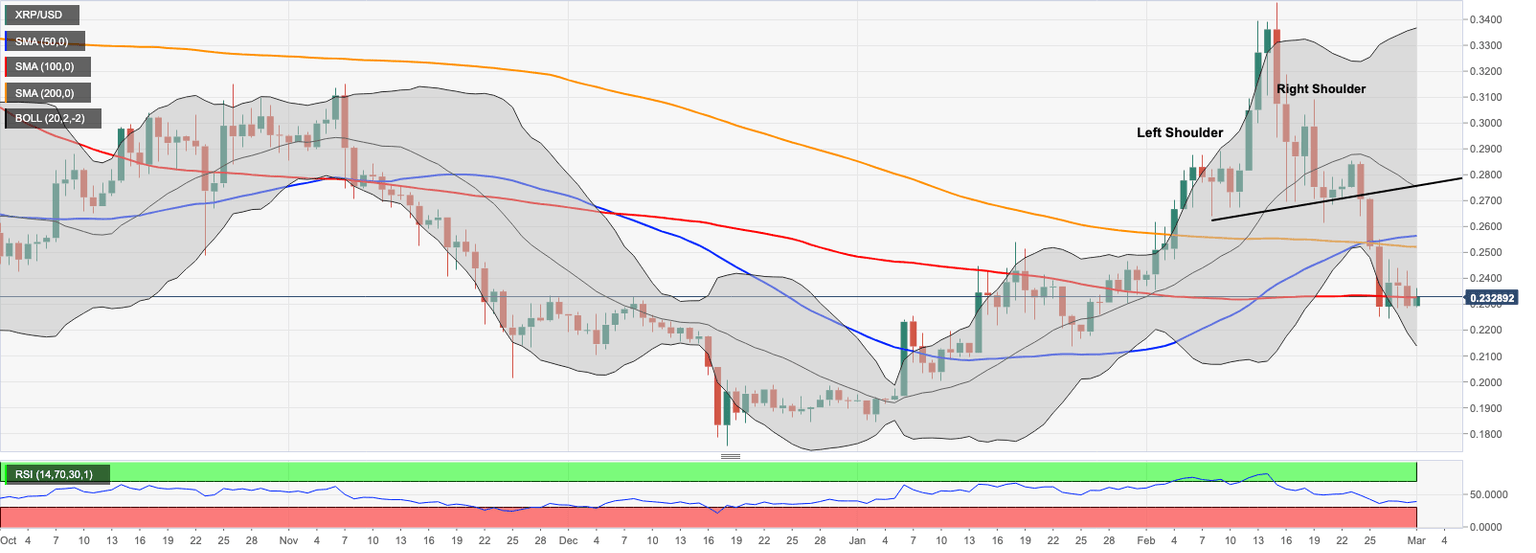 Ripple's XRP has settled above $0.2300 as the cryptocurrency market attempted recovery from the recent sell-off. The third-largest coin has gained over 1.6% since the beginning of Sunday; however, the upside momentum remains weak as the price stays below key technical levels.