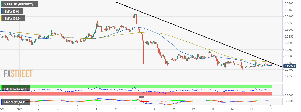 Ripple is stuck in a very narrow range between $0.27 and $0.28. The Asian trading session has seen very minor action actions on either side. From an opening price of $0.2721, XRP has only managed to rise to $0.2730 (intraday high). A low of $0.2718 has been touched on the day but XRP is dancing with $0.2727 at the time of writing.