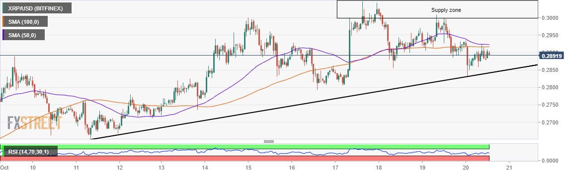 Ripple bulls are pushing for recovery after a brief dive towards the $0.28 support area. On the upside, movement above $0.30 has proved to be unsustainable. The sellers are largely in control especially with the 50 Simple Moving Average (SMA) on the one-hour chart inching closer to the 100 SMA.
