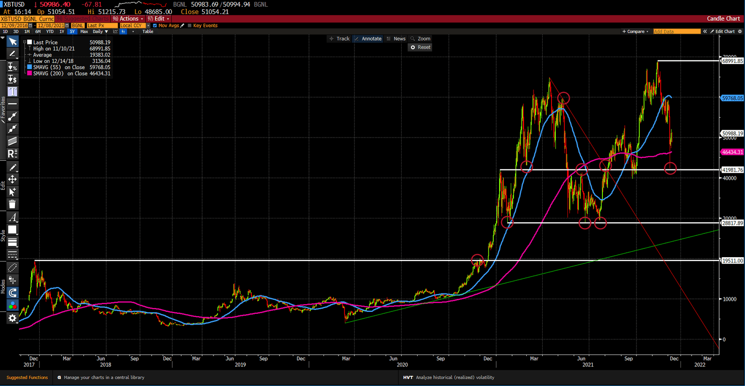 Bitcoin (BTC) had one of its less volatile years in 2021, with a 138% variation between the highest and lowest price point. Still, the year saw its fair share of whipsaws as BTC’s price action provided more entry and exit levels for investors to profit.