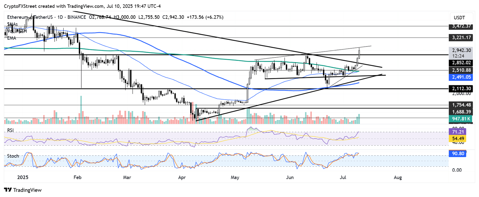 Ethereum Price Forecast: ETH tests $3,000 following strong ETF and treasury inflows