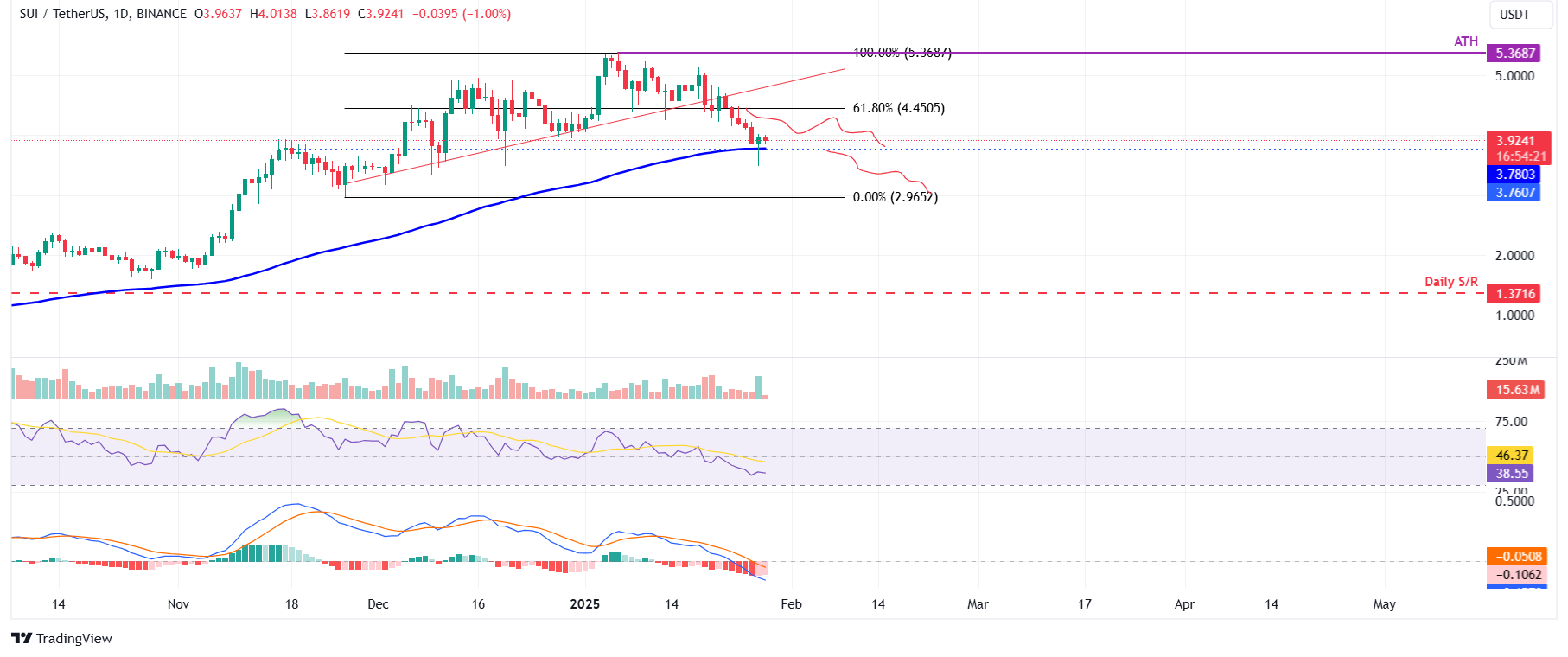 Sui (SUI) and Ondo (ONDO) prices hover around $3.90 and $1.33 on Tuesday after declining recently. Both altcoins could be poised for a double-digit crash ahead as Sui technical indicators show bearish momentum, while ONDO funding rates are negative.