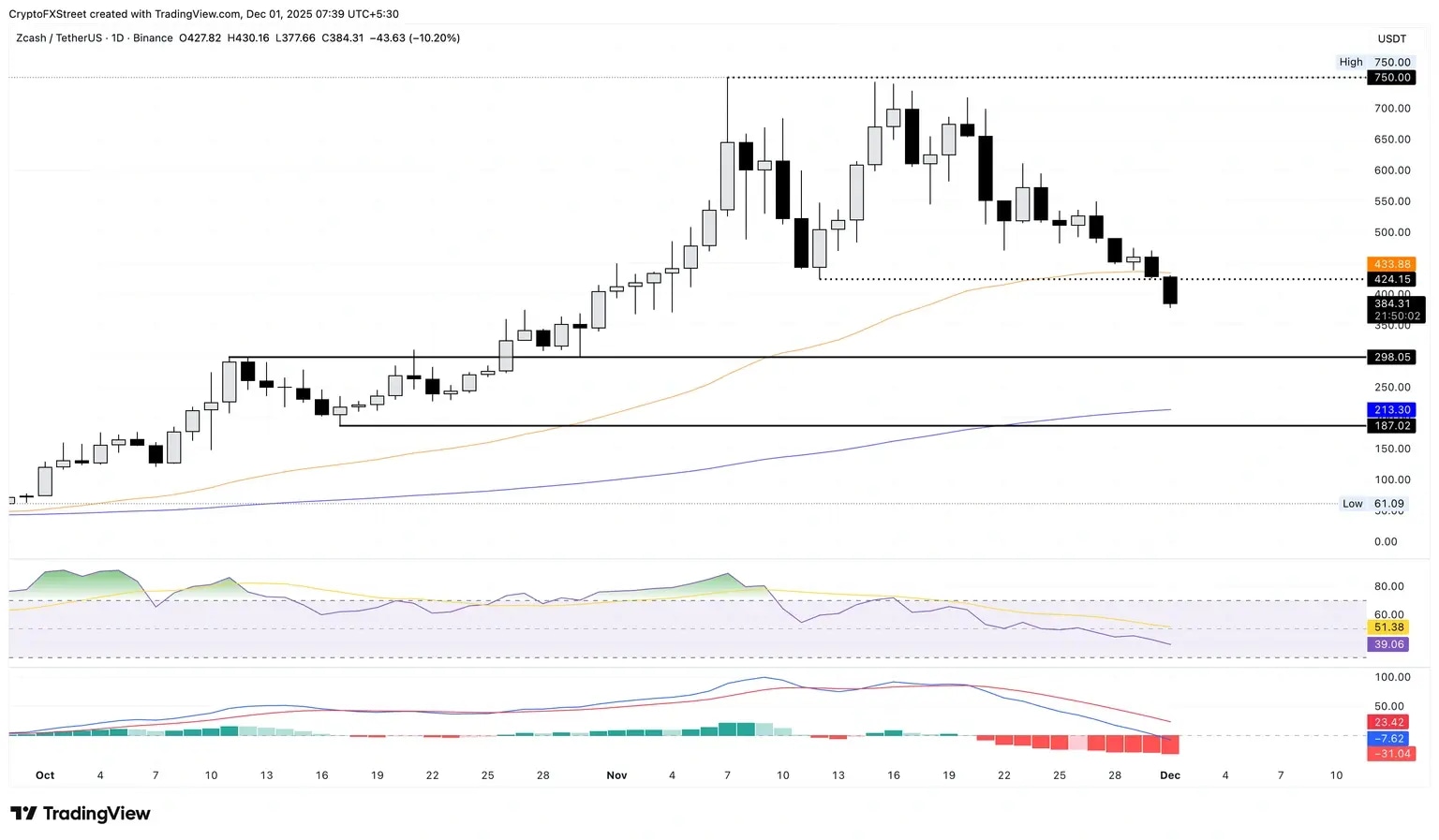 Zcash (ZEC), Starknet (STRK), and Ethena (ENA) start December on a bearish note, extending the pullback from last week. With double-digit losses over the last 24 hours, ZEC, STRK, and ENA are the top crypto losers and are at risk of further decline.