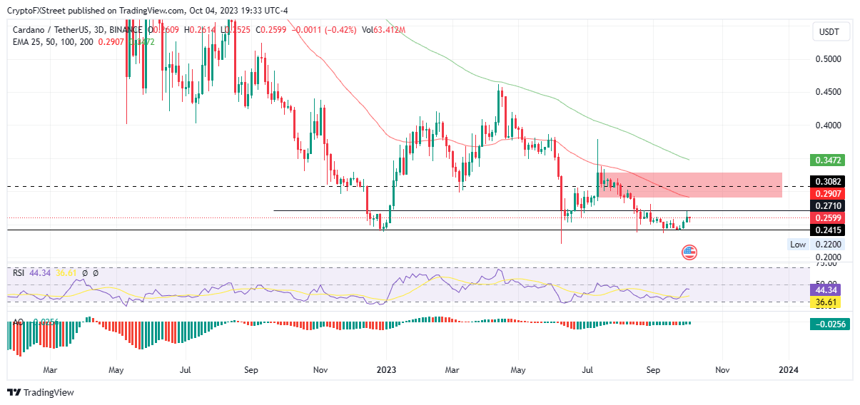 Cardano (ADA) price is attempting a recovery rally on the higher timeframes, recording three consecutive higher highs as indicated in the chart below. However, bulls must do more if the trend is to be sustained, with overhead pressure building up to cloud the token’s upward momentum.